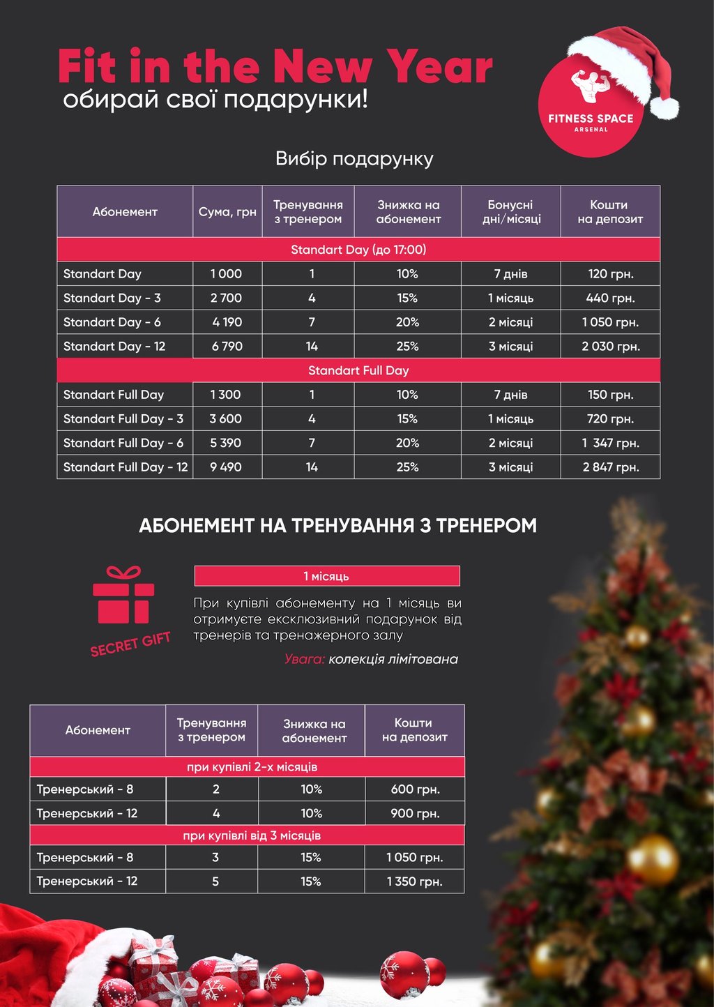 Обирайте те, що хотілося саме вам. Хотіли індивідуальне тренування з тренером чи солодку знижку на абонемент, чи бонусний місяць в зал або супервигідні умови на продовження вашого абонементу – тримайте🎁